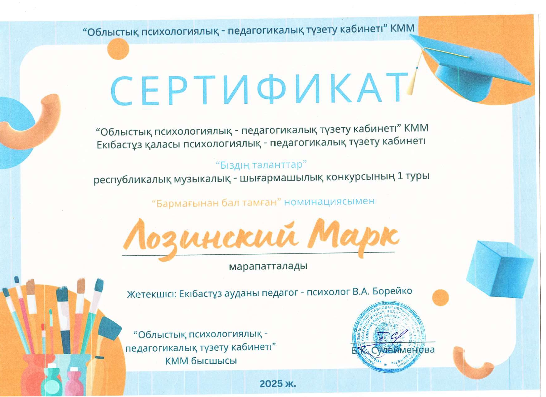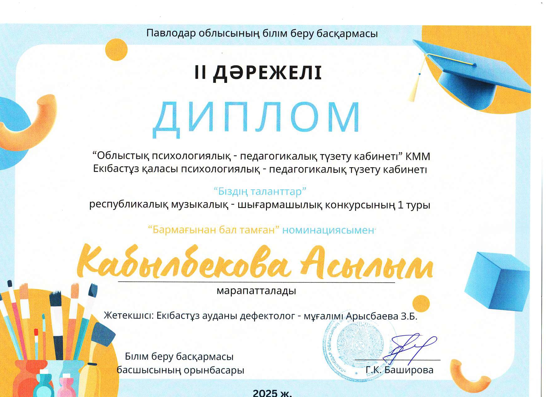 Байқауға Павлодар облысының түзету-педагогикалық қолдау кабинеттерінің (КППК) оқушылары белсене қатысты. Олар өздерінің шығармашылық жұмыстарын жоғары деңгейде ұсынды. Қатысушылардың өнері шынайылығымен, ерекшелігімен және жүректен шыққан жылуымен ерекшеленді. Байқау қорытындысы бойынша барлық қатысушыларға олардың жетістіктері мен белсенділігін растайтын сертификаттар мен дипломдар табысталды.